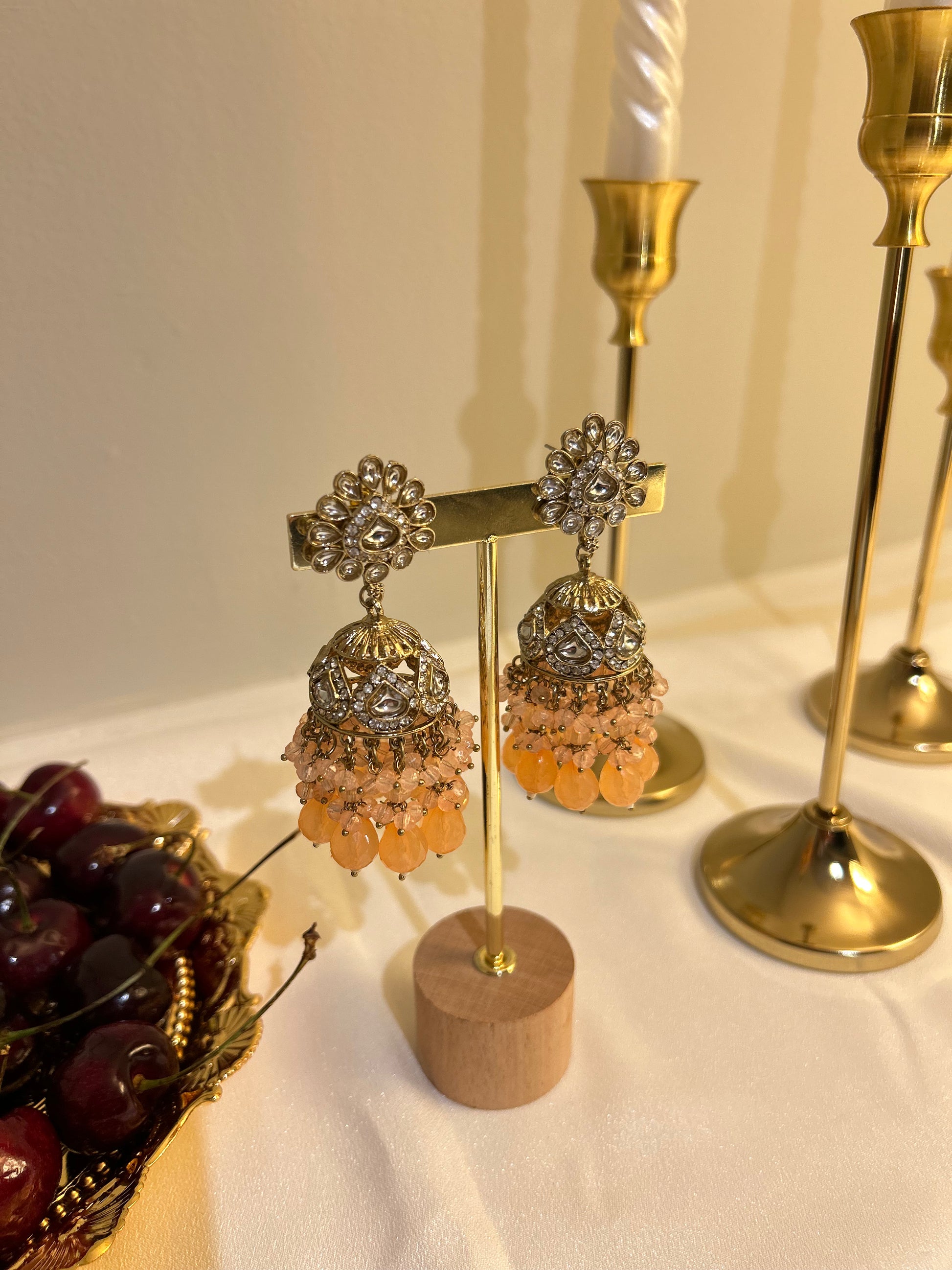 A timeless ode to elegance — the Gulnaar Jhumkay embody the beauty of tradition with a touch of modern radiance. Handcrafted with intricate detailing and delicate charm, each pair captures the essence of celebration and grace.